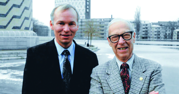 Professor Karl Folkers, an esteemed bio-chemist at the University of Texas, Austin, was the first to determine the structure of CoQ10 and isolate the compound in a lab. Here, he is seen with former Research Director Sven Moesgaard from Pharma Nord.